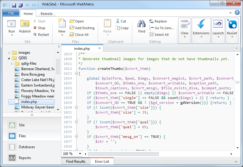 The other day I was talking with one of my coworkers, Yishai Galatzer, about Microsoft's WebMatrix. By way of introduction, Yishai is one of our senior developers on the WebMatrix project; I'm not sure if you've used WebMatrix, but it's a pretty handy website editor. Here's a few generic screen shots: