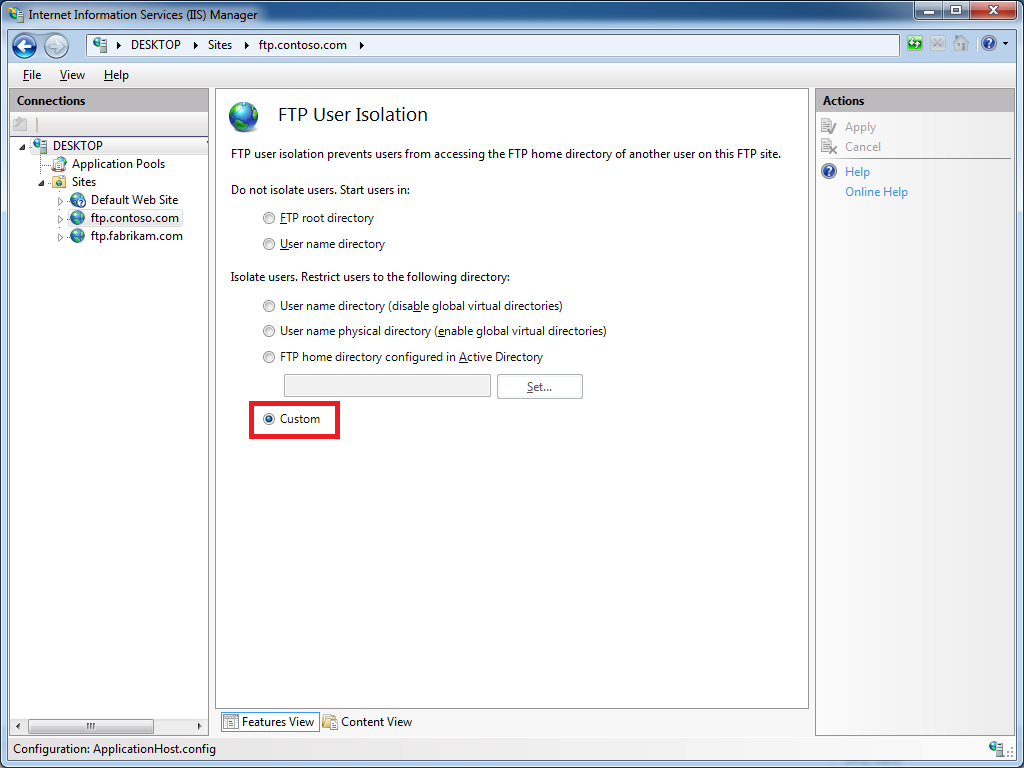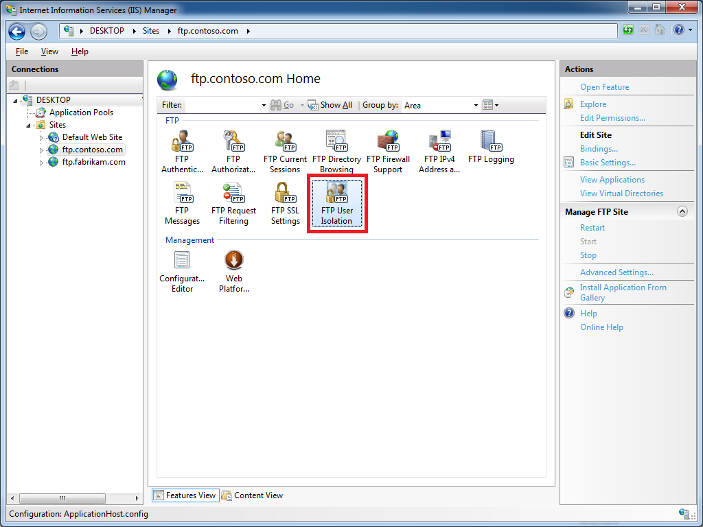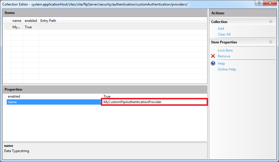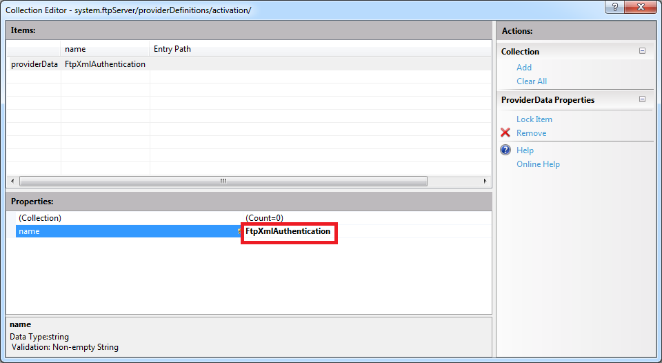 To actually use a provider for an FTP site, you would need to add the provider to the settings for the FTP site in your IIS settings. So for part 2 of this blog series, we will focus on how to add a custom provider to an FTP site by using the IIS Configuration Editor.