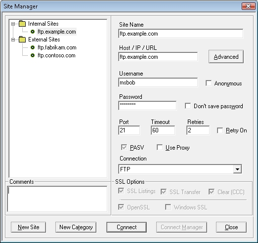 Core FTP LE has a great Site Manager feature, which allows you to store commonly-used connections to FTP sites: