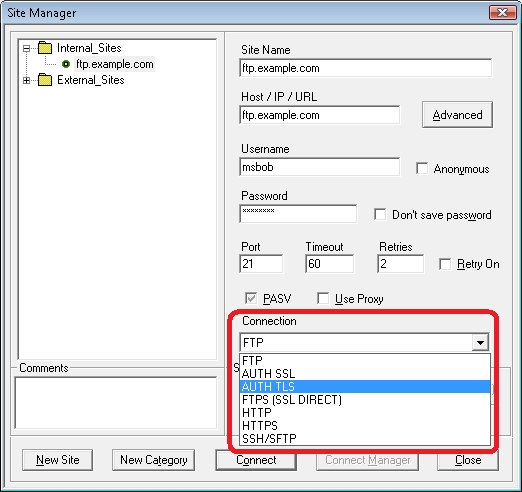 - This uses the AUTH TLS and PROT P commands when establishing a connection.