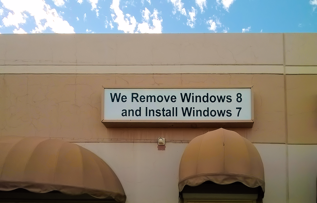 This design was so clunky and so confusing for users that it resulted in the following actual advertisement outside a local computer repair shop: