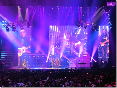 I took the following photo of Rush on stage in Toronto during one of their last concerts, and Neil is the central point of focus in that image, as it should be - Neil was the principle lyricist and inarguably the driving force behind their success. This tour was Rush's last hurrah before they collectively stepped down from their