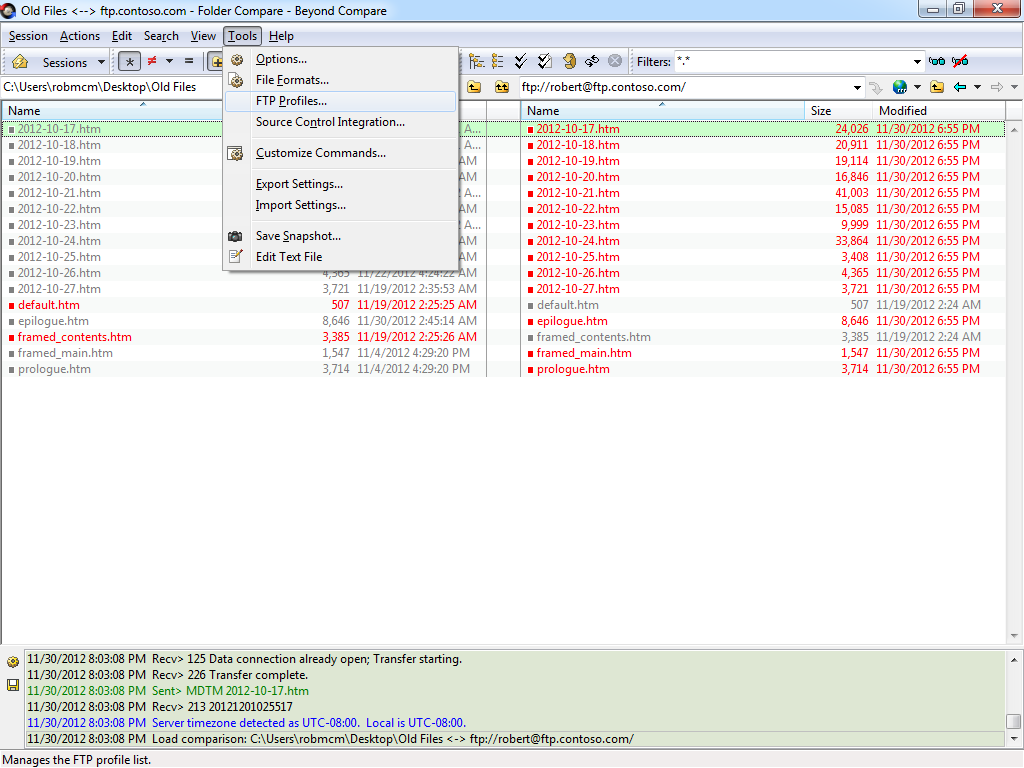 That being said, let's get back to the business at hand. Beyond Compare 3 has a collection of FTP Profiles, which you can think of as analogous to a site manager in more traditional FTP clients.