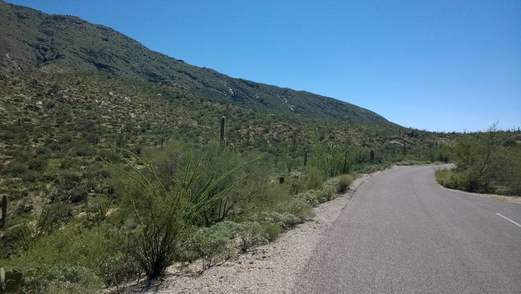 The temperature was pretty nice for today's ride. I have done several rides in 100F+ temperatures, so it was nice to have a ride that stayed around the mid-80s. That being said, for some inexplicable reason the temperature spiked all the way to 98.6 while I was riding around Saguaro National Park, which made the loop a little miserable at times. However, the temperature dropped back down to 90 degrees by the time I left the park.
