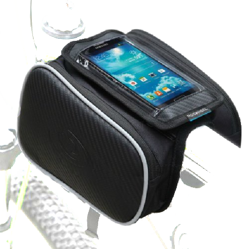 I did a couple of things differently for today's ride: first of all, I replaced the small bag that attaches to my bike frame (which I have been using to carry things like Gu packets and my ID) with a new pannier-style bag. This allowed me to carry a few more items, but it also allowed me to have decent control over my cell phone while keeping it safe from the elements. And the bag's construction still allowed me to reach around the back of my phone to switch my external battery pack on and off.