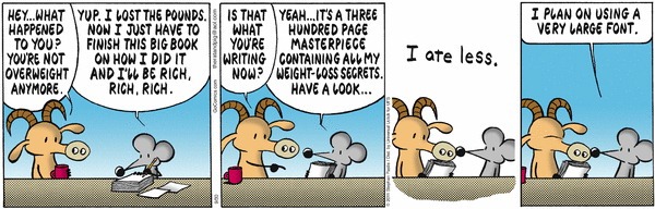 One of my favorite comic strips is Pearls Before Swine, and the comic from September 30th, 2011, sums up why I would never be able to write a book about weight loss: