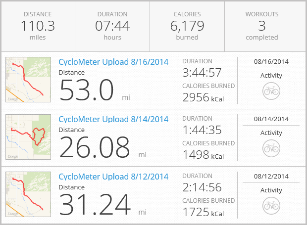 I chose to ride 50 miles because it works out nicely riding to Colossal Caves and back a couple times; there are a lot of hills, so it keeps me working the whole time. But I wanted to ride at least 43 miles today because that would help me hit the century mark (100 miles) for the week. That being said, going past my goal is not bad, either. And with that in mind, I logged 110 miles on the bicycle this week – with nearly 6,200 calories burned.