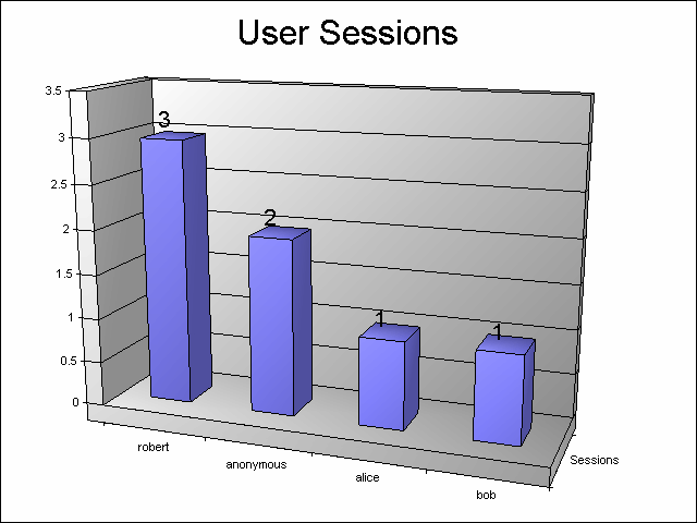 Now let's look at some interesting data - one of the main focuses for this blog series is charting with Log Parser, so let's look at doing something useful with the data. To start with, here's how to create a pie chart that counts the number of sessions by user name: