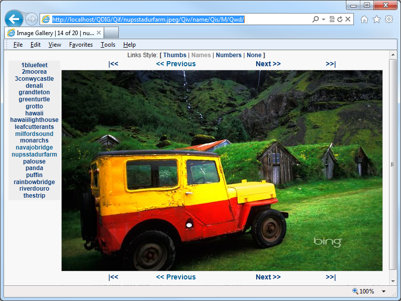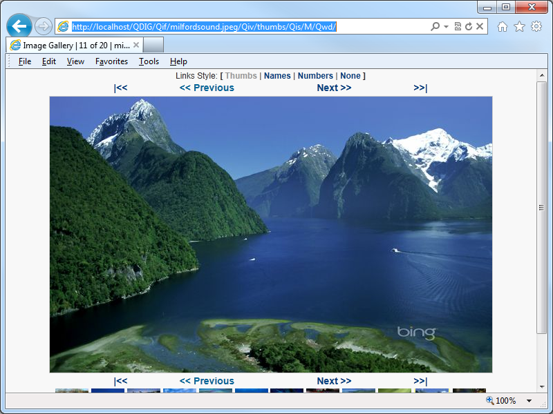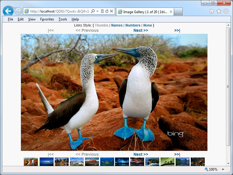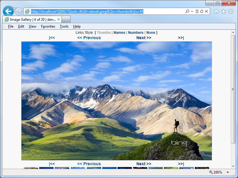 One of the applications that I like to use on my websites it the Quick Digital Image Gallery (QDIG), which is a simple PHP-based image gallery that has just enough features to be really useful without a lot of work on my part to get it working. (Simple is always better - ;-].) Here's a screenshot of QDIG in action with some Bing photos: