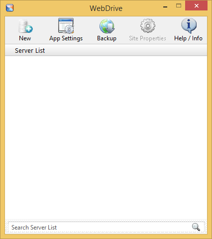 When you install and open WebDrive, you are presented with a fairly empty user interface: