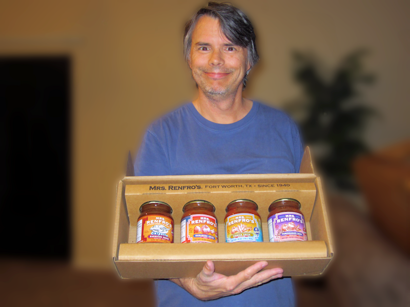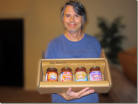 Needless to say, I was quite happy when the Salsa Fairy arrived with a box of Mrs. Renfro's salsas earlier today... which you can plainly see in the following image. A second box of salsas arrived at the same time, and between the two boxes I had several jars of Mrs. Renfro's Habanero Salsa, Tequila Salsa, Chipotle Salsa, Pomegranate Salsa, and Mexican Hot Sauce.