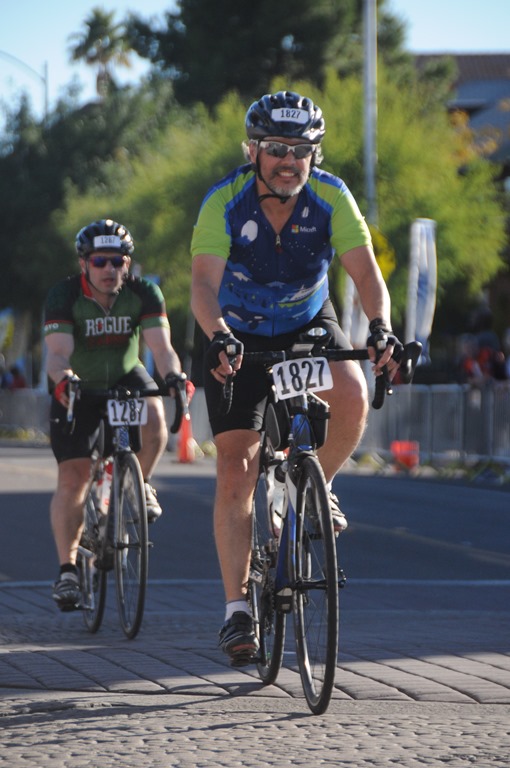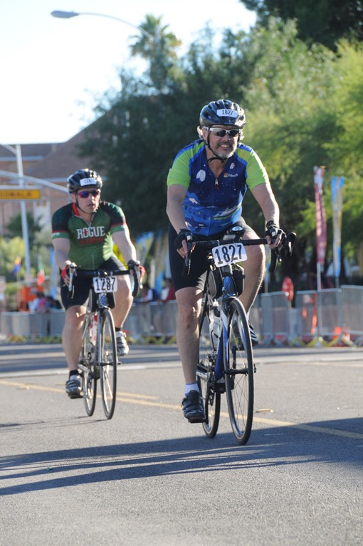 Kevin and I riding towards the finish line. |