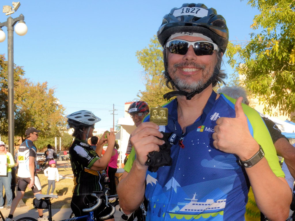 I made it across town in short order, and I pulled into the parking lot at the Tucson Convention Center (TCC) shortly after 6:00am. TCC is near the starting line and has ample parking for lots of participants, so several cyclists were getting their gear ready as I parked and started to prep my gear for the day. I had loaded all of my equipment onto my bicycle, and as I was putting on the last of my cycling clothing I made a horrific discovery: I was missing my cycling helmet. (This is why I referred to this day's race as "The Ride That Almost Wasn't.")