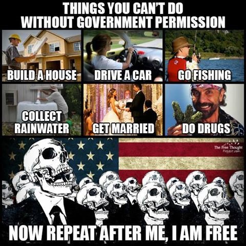 The schmuck who created that image has no idea just how many personal freedoms he actually has; so now he takes his over-privileged life for granted and believes that a few inconveniences in a free society are some sort of bondage.