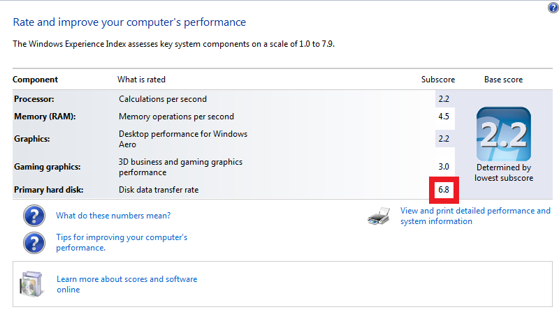 Once I had everything completed and reassembled, Windows booted considerably faster when using the SSD; it now boots in a matter of seconds. (I wish that I had timed the boot sequence before and after the upgrades, but I didn't think of that earlier... darn.) Running the Windows 7 performance assessment showed a measurable increase in hard drive speed, with little to no increase in RAM speed. Of course, since there was no speed increase for CPU or graphics, the overall performance score for my laptop remained the same. That being said, with twice the RAM as before, it should be paging to disk less often, so regular usage should seem a little faster; even when it does need to swap memory to disk it will be faster using the SSD than with its old hard drive.